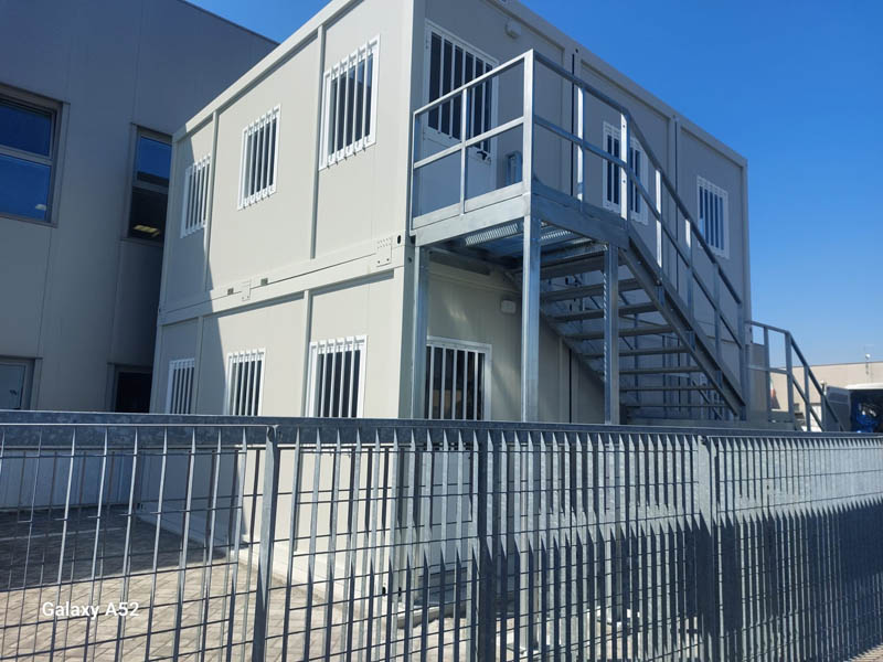Questa realizzazione dimostra come i moduli prefabbricati possano essere utilizzati non solo come soluzioni temporanee, ma come veri e propri spazi di lavoro strutturati, affidabili e progettati per durare nel tempo. La configurazione su due piani permette inoltre di ottimizzare le superfici disponibili, mantenendo flessibilità e possibilità di adattamento a esigenze future.